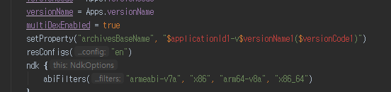 abiFilters("armeabi-v7a", "x86", "arm64-v8a", "x86_64")