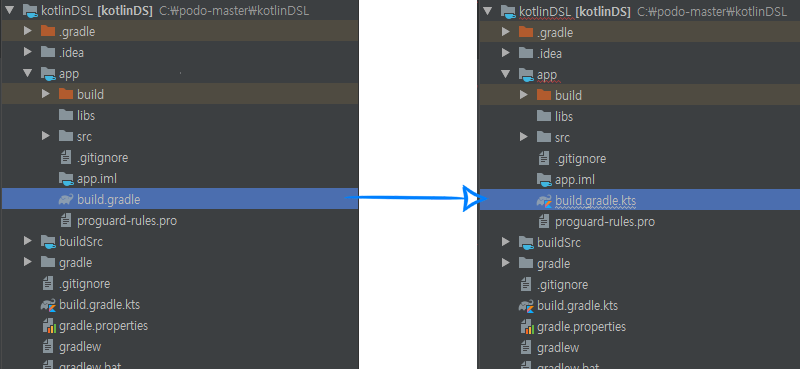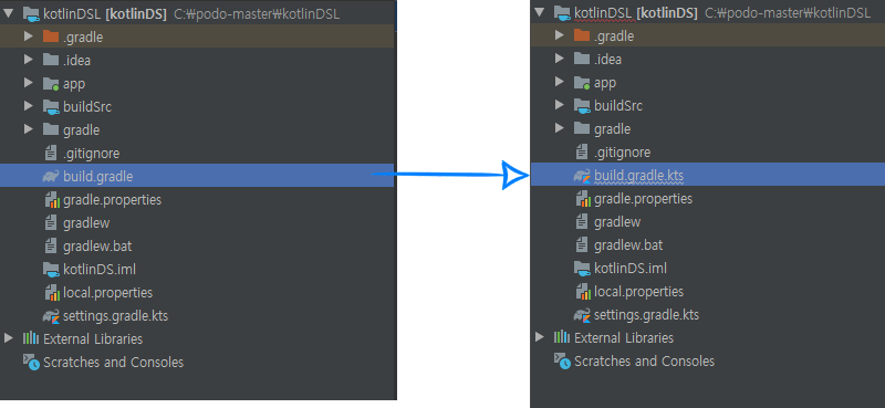 ※ Gradle Kotlin DSL 의 기본 확장자 : .gradle.kts / .buuld.gradle.kts / settings.gradle.kts